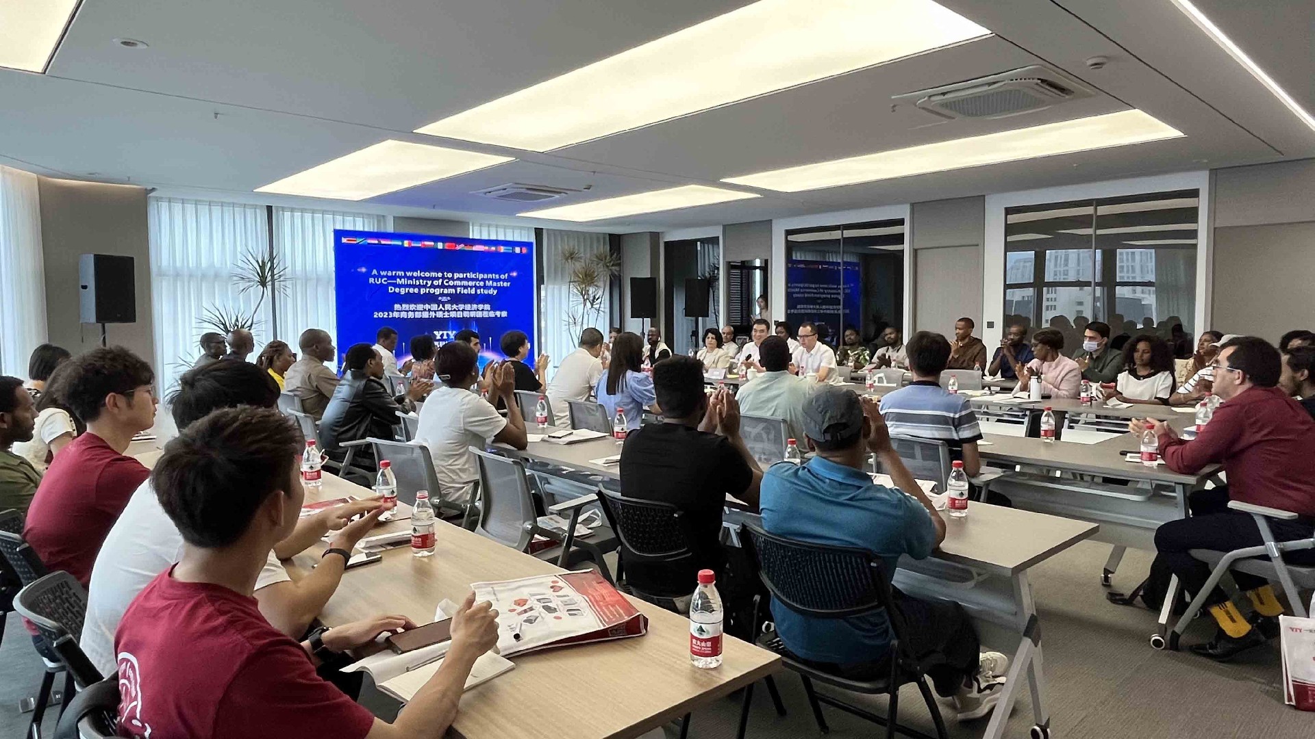 6月9日上午,由30多位外籍碩士組成的中國(guó)人民大學(xué)經(jīng)濟(jì)學(xué)院調(diào)研團(tuán)在副院長(zhǎng)李勇帶領(lǐng)下,來到一元科技有限公司樂清辦公室進(jìn)行調(diào)研交流。樂清市商務(wù)局副局長(zhǎng) 陳景慧,一元科技董事長(zhǎng)夏洪鋒,銷售總監(jiān)伍淑旦等領(lǐng)導(dǎo)熱情接待了調(diào)研團(tuán)一行。